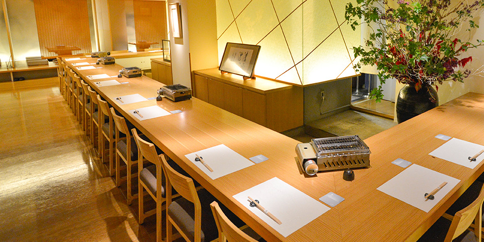カウンターは少人数でのご利用や会食に、座敷は接待や特別なお席に、テーブル席は団体でのご利用にと、シーンに応じた臨機応変な対応を可能にしています。カウンター奥には専用のバーを併設しており、すべてのドリンクはバー担当スタッフが一杯ずつ丁寧に仕上げます。