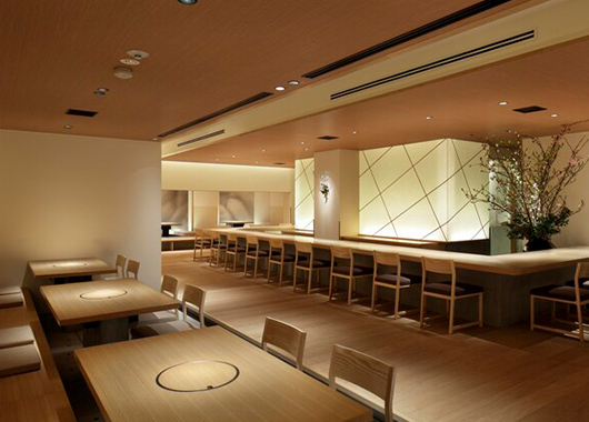 店内中央には、店全体を見渡せる大きなカウンター(14席)を設け、その周囲には座敷(5テーブル)とテーブル席(4テーブル)をご用意。お客様のご利用シーンや予約状況に合わせて、最適な空間へとご案内しています。
